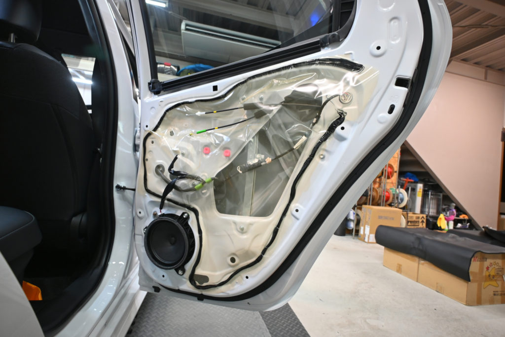 ヤリスの純正スピーカーに、スーパーデッドニング・フロント&リア同時施工 大阪府より