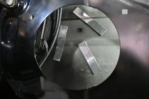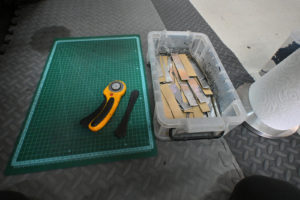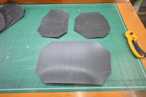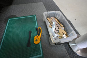 ゴム質の制振材をサービスホールの大きさにカット。