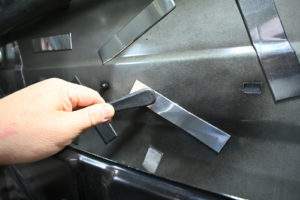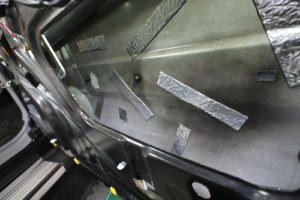 ポイント部分に制振材を貼り、その後ヘラでしっかりと押さえつけ次のポイントを探っていきこれを繰り返していきます。