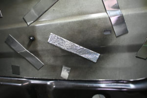 あえて適当にカットしてある制振材の中から最適な大きさの物を選んでポイント部分に貼り付けていきます。
